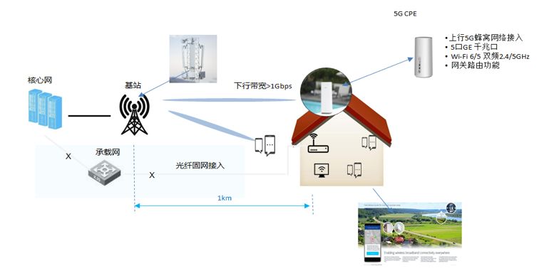 众所周知, 一般运营商宽带业务传统方式是以电话线, 光纤或者同轴线等媒介接入方式来实现对广大用户提供有线宽带服务业务,但是在实际网络建设中,由于某些地区基础建设并不到位,人口稀少等各种原因,导致无法提供高质量网络带宽服务, 而5G网络的出现为运营商提供了新的解决方案 。5G三大特性-高带宽,低延迟,海量连接为运营商以及用户提供了更多无线互联网服务的可能性,可以看到在5G网络的超高速能力已经接近甚至超过了现有普通家庭的宽带网速,运营商无需拉一个光纤入户,只需要配备一个5G CPE 就能为用户提供高速互联网接入服务。